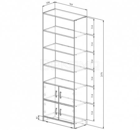 Каждую часть возможно приобрести по отдельности. Состав комплекта: стеллаж Либерти-5 (1 шт.), дверка для стеллажей Либерти (4 шт.).