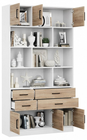 Каждую часть возможно приобрести по отдельности. Состав комплекта: стеллаж Либерти-6 (1 шт.), блок ящиков Либерти малый (1 шт.), блок ящиков Либерти большой (1 шт.), дверка для стеллажей Либерти (6 шт.).