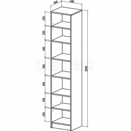 - 2 дверцы, 6 полок