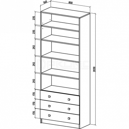 - 2 дверцы, 3 ящика,