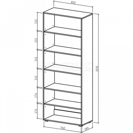 - 2 дверцы, 5 полок