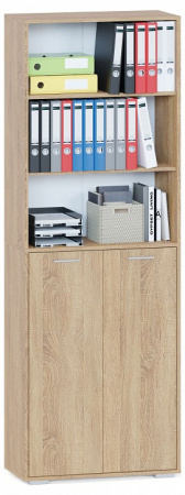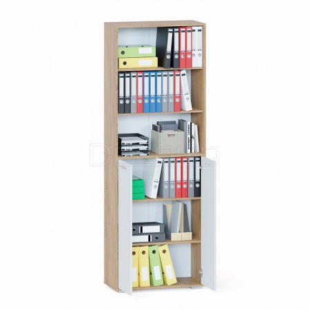 Стеллаж ШУ-353 —универсальное решение для тех, кто ценит практичность и стиль. Подойдет для хранения документов, канцелярии и книг в вашем офисе. А также дополнит интерьер дома. Вместительный стеллаж имеет три открытые полки, а также нижнюю часть с распашными дверьми и тремя полками. Размеры полок 708 х 336 мм. Корпус и полки изготовлены из качественного ламинированного ДСП толщиной 16 мм, самого популярного материала для производства корпусной мебели, обеспечивающего необходимую прочность и долговечность деталей.
