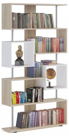 Открытый многофункциональный стеллаж, сделанный в необычной геометрии полок, которые будто парят в воздухе благодаря металлическим элементами между ними. Он станет полезной частью гостиной, спальни, детской комнаты, квартиры-студии или офисных помещений.