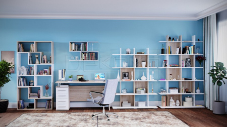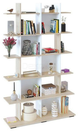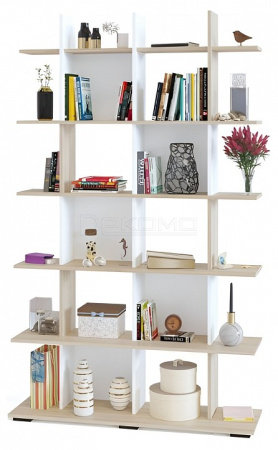 Наполнение стеллажа состоит из множества открытых полочек. На них можно с удобством разместить книги, журналы, косметические средства и различные предметы декора.