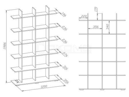 - Ш:1200 x Г:356 x В:1982