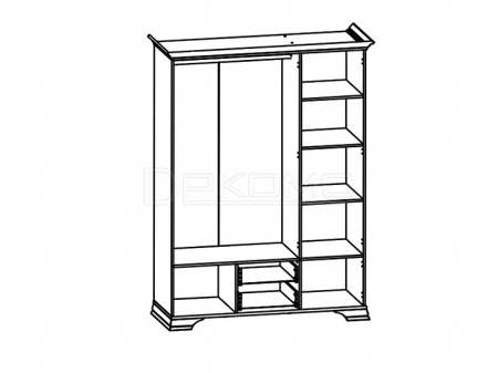 За правой боковой дверью расположены полки под белье, а за левой и средней дверью расположено большое отделение со штангой для вешалок.