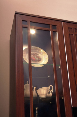 Шкаф-витрина Шерлок 13 для посуды выполнен в приятном дизайне, снабжен встроенной подсветкой, а тонированное стекло защищает посуду и сувениры от воздействия ультрафиолетовых лучей.
