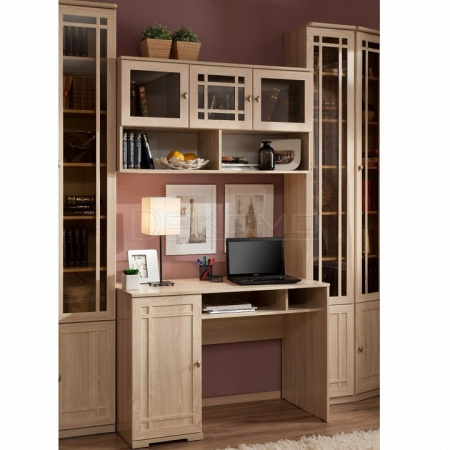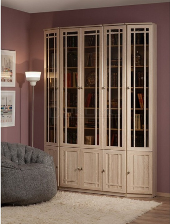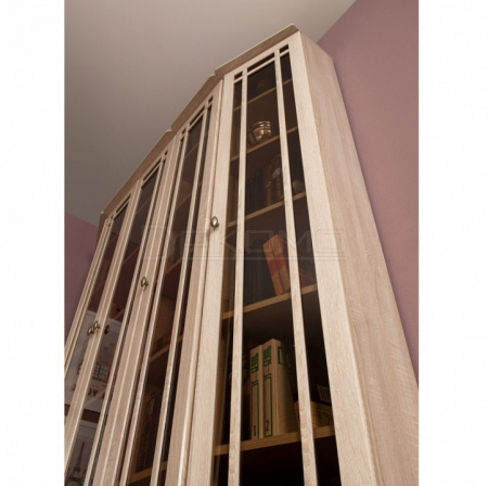 Идеальным местом для обустройства библиотеки в квартире является домашний кабинет. В нем Вы сможете заняться важными делами в спокойной обстановке или просто почитать любимую книгу. Благодаря модульности, библиотеку SHERLOCK можно расположить в Вашем домашнем кабинете, выбрав для компоновки именно те модули, которые Вам нужны. Письменный стол, расположенный у окна, сделает чтение и работу с документами максимально комфортным. В высоких изящных шкафах библиотеки SHERLOCK поместятся книги любого формата: от самых маленьких книг до больших иллюстрированных альбомов, поскольку Вы сами можете регулировать высоту полок. Тонированные стекла фасадов высоких книжных шкафов защитят книги от прямых солнечных лучей, пожелтения страниц, пыли и позволят без проблем найти нужную книгу. Завершающие модули библиотеки SHERLOCK: SHERLOCK 34 и 35 Шкаф для книг, позволят создать гармоничную и, в то же время, изысканную атмосферу в кабинете. Библиотека выполнена в одном декоре и стиле с гостиной SHERLOCK — Дуб Сонома.
