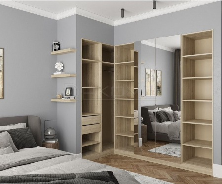 Гардеробная Рум – это удобный гибкий конструктор для любой комнаты, в которой необходимо обустроить продуманную систему хранения. Мебель выполнена в практичных цветах, которые гармонично смотрятся в современных интерьерах. Цвета корпусов, полок и фасадов можно комбинировать в рамках комплектов и получать как монохромные, так и контрастные сочетания.