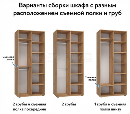 Шкаф для одежды Оптима ОП-01 станет замечательным дополнением для обустройства комфортной и функциональной комнаты. За распашными дверьми находится две штанги для вешалок-плечиков. Полки для хранения сложенной одежды, белья, различных аксессуаров и коробок с обувью. Три варианта сборки шкафа с разным расположением съемной полки и штанг. Высота опоры 20 мм. Фурнитура: петли с доводчиками, ручки металл, опоры регулируемые.