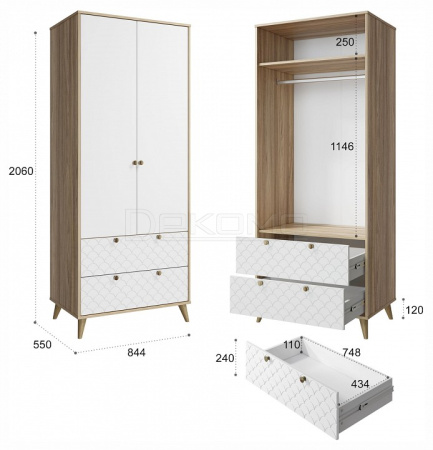 - Ш:844 x Г:550 x В:2060