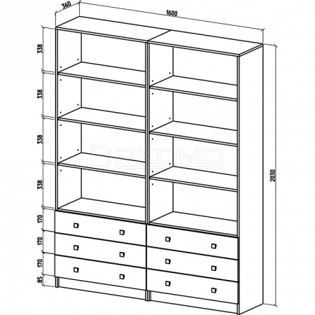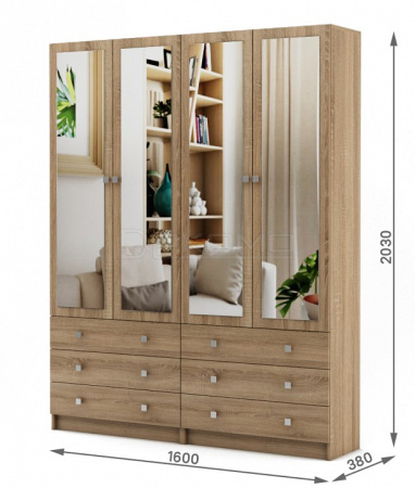 - 4 дверцы, 6 полок,