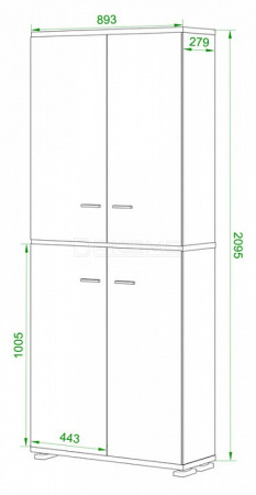 - 4 дверцы, 9 полок