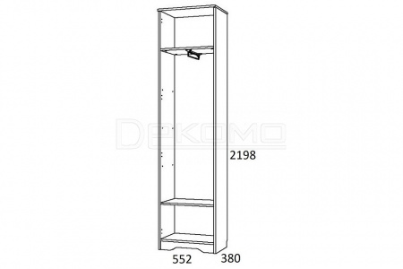 - 1 выдвижная штанга для вешалок, 1 дверца, 2 полки