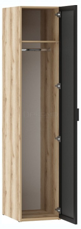 Удобный модуль из современной коллекции Арден. Каркас: ЛДСП 16 мм., кромка ПВХ 0,4 мм. У шкафа рамочный фасад из алюминенвого профиля с зеркалом. Ручки черные, пластиковые. Шкаф 200.02 имеет универсальную сборку. К шкафу 200.02 подходит антресоль 200.11.