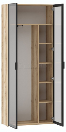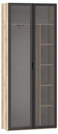 Двухстворчатый распашной шкаф для одежды (Витрина) 200.03 из современной серии Арден станет центром в системе хранения. Каркас: ЛДСП 16 мм., кромка ПВХ 0,4 мм. У витрины рамочный фасад из алюминиевого профиля с тонированный стеклом. Ручки черные, пластиковые. К шкафу 200.03 подходит антресоль 200.12.
