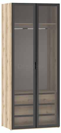 Двухстворчатый распашной шкаф для одежды (Витрина) 200.04 из современной серии Арден станет центром в системе хранения. Каркас: ЛДСП 16 мм., кромка ПВХ 0,4 мм. У витрины рамочный фасад из алюминиевого профиля с тонированный стеклом. Ручки черные, пластиковые. К шкафу 200.04 подходит антресоль 200.13. К шкафу 200.04 можно дополнительно взять ящики 200.101.