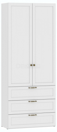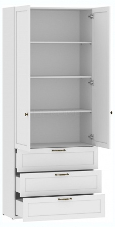 Шкаф (Фасад) Орлеан НМ 041.90 прекрасно впишется в гостиную комнату или кабинет. Конструкция шкафа включает в себя полки для хранения и 3 выдвижных ящика. Ящики установлены на направляющие полного выдвижения скрытого монтажа с доводчиками. Модули серии изготавливаются в стиле современная классика. Ручка - металлическая, патинированное золото. Опоры - наконечники.