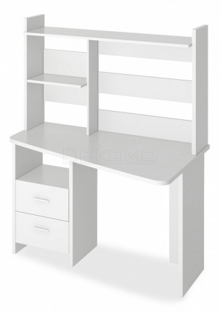 Компьютерный стол с трапециевидной столешницей и надстройкой.