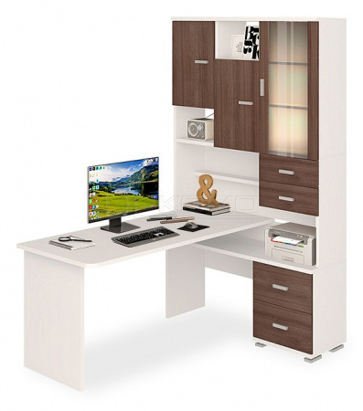 Стол компьютерный Нельсон Lite СКЛ-Угл130+НКЛХ-130 БЕ ЛЕВ