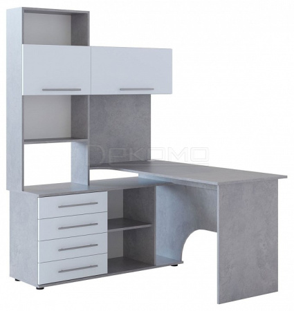 Многофункциональный компьютерный стол КСТ-14 для домашнего кабинета или офиса. Модель сочетает в себе широкий компьютерный стол с размером столешницы 1400 мм, тумбу с ящиками, полками и нишей под системный блок. Высокая надстройка имеет открытые полки и два закрытых шкафа. Двери шкафчиков открываются вверх. Внутренний размер ящиков — 456 х 346 мм.