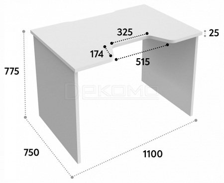 Благодаря толщине деталей 25 мм стол прочный, основательный и очень надежный! Разрез в столе помогает удобно разместить локти. У стола регулируемые опоры и вырез для провода.