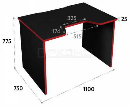 Благодаря толщине деталей 25 мм стол прочный, основательный и очень надежный! Разрез в столе помогает удобно разместить локти. У стола регулируемые опоры и вырез для провода.