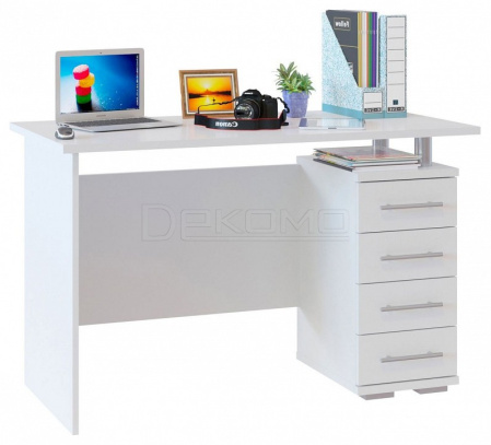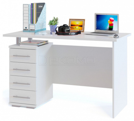 Удобный большой стол со встроенной вместительной тумбой. Строгие и лаконичные формы будут прекрасно смотреться в современном интерьере. Тумба имеет 4 ящика и нишу сверху. Стол универсален по функционалу и может быть использован как письменный и как компьютерный. Внутренний размер ящиков составляет — 223 х 370 мм. Глубина ящика 81 мм. Направляющие роликовые.