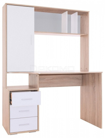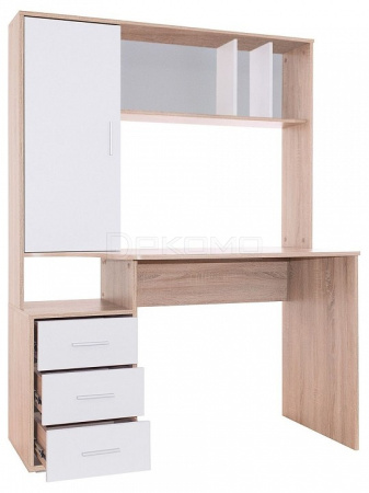 задняя стенка сделана из ДВП белого цветамножество мест для хранения — чтобы все было под рукой функциональный — оснащен тумбой с тремя ящиками и надстройкой с полками и стеллажом металлические ручки — стильные и долговечные шариковые направляющие полного выдвижения — бесшумное выдвижение ящиков, долговечность конструкции.