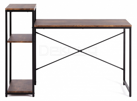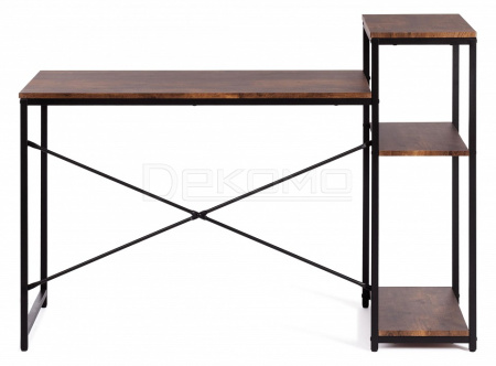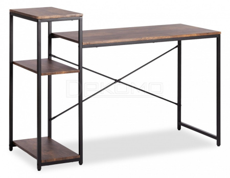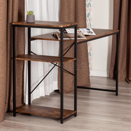 Компактный компьютерный стол WD-15 станет отличным решением для любого рабочего кабинета и отлично впишется в обстановку дома или офиса, сочетая в себе функциональность и уникальный внешний вид. Каркас модели выполнен из металла с порошковым покрытием, которое защищает поверхность от влаги, предотвращает появление ржавчины. Прямоугольная столешница из МДФ толщиной 15 мм имеет долгий срок службы, устойчива к механическим повреждениям и термическому воздействию. Надежные ножки регулируются по высоте для устранения неровности пола. В стол интегрирован небольшой стеллаж. Нижние полки можно использовать для хранения документов, папок, канцелярских принадлежностей, различных аксессуаров, а на верхнюю полку можно поставить монитор. Оригинальное сочетание черного металлического каркаса и коричневой столешницы в текстуре burnt выглядит стильно и гармонично. Модель WD-15 в стиле лофт не нуждается в сложном уходе, будет радовать вас своим первоначальным видом на протяжении длительного времени. Стол поставляется в разобранном виде, требуется простая сборка по прилагаемой инструкции. Модель может быть дополнительно укомплектована стеллажами WS-01 и WS-02 в текстуре burnt.