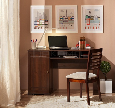 Стол письменный Шерлок 115 - классический эргономичный письменный стол. Большая рабочая поверхность - залог комфортного и продуктивного труда. Снабжен тумбой и двумя открытыми отделениями для бумаг или клавиатуры.