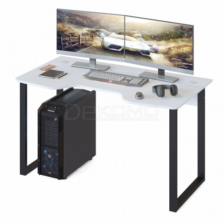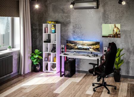 На игровом компьютерном столе КСТ-19 достаточно места для любой оргтехники или установки сразу двух мониторов. Металлические опоры обеспечивают прочность конструкции, а поверхность с анатомическим вырезом позволяет расположиться так, чтобы локти всегда оставались на столе.