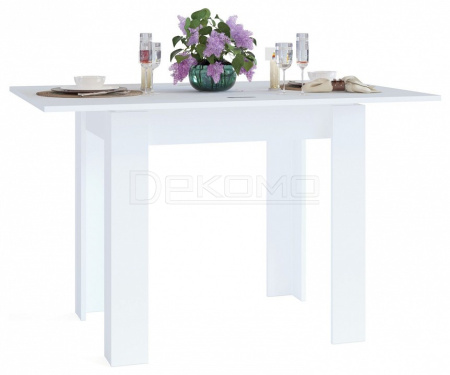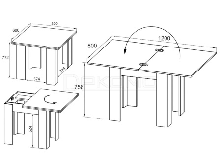 Стол оборудован поворотным раскладным механизмом, который увеличивает ширину столешницы до 1200 мм. Чтобы разложить стол, нужно отодвинуть столешницу, повернув ее на 90 градусов и раскрыть как книжку. Легко и удобно.