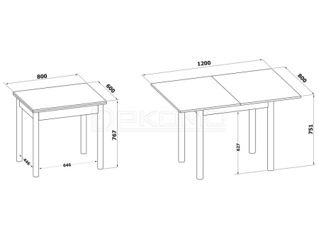 - Д:800 x Ш:600/800 x В:751/767