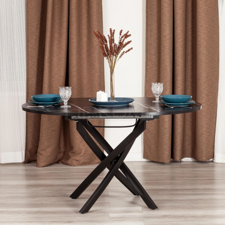 Круглый раскладной обеденный стол MANZANA из коллекции Modern отлично впишется в современный интерьер городской квартиры или загородного дома. Стол будет отлично смотреться в гостиной, кухне или столовой. Столешница цвета дуб вотан и вставка "бабочка" выполнены из ЛДСП толщиной 22 мм на лицевую поверхность которых нанесен защитный слой HPL толщиной 1 мм. HPL имеет защитное покрытие оверлей высокой степени истирания, которое повышает устойчивость поверхностей к повреждениям. Механизм раздвижения синхронный со вставкой "бабочка". Кромка столешницы оклеена высокопрочной пленкой из ПВХ толщиной 2 мм. Стильные черные изогнутые металлические ножки окрашены порошковой краской. Устойчивые ножки стола регулируются по высоте для устранения неровности пола. За столом могут разместиться от 2 до 6 человек. Стол упакован в транспортировочный короб из ЛДСП + гофрокороб. Модель проста в сборке, инструкция прилагается.