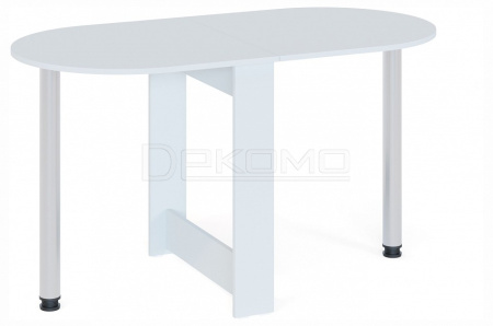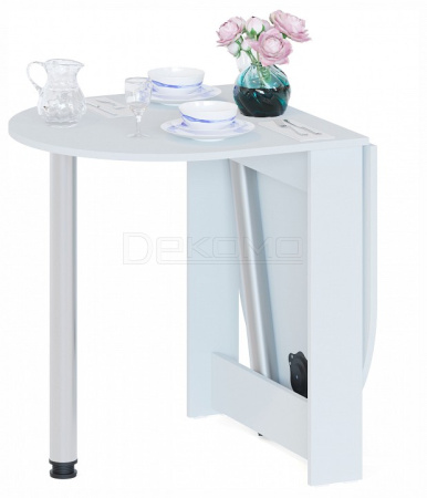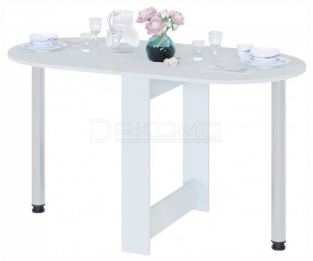 Стол-книжка СП-18 прекрасно дополнит интерьер небольшой кухни или гостиной, благодаря своей функциональности и компактным размерам. Модель в сложенном виде поможет организовать комфортное место для приема пищи или работы за ноутбуком, при этом ножка хранится в специальной нише в основании стола. При необходимости изделие быстро и без усилий можно разложить до полноценного обеденного стола, подняв одну половину столешницы и прикрутив к ней ножку. Хромированные опоры с возможностью регулировки по высоте обеспечивают надежность и устойчивость конструкции, а скругленные углы и овальная форма рабочей поверхности исключают травмоопасность. Ширина столешницы в разложенном состоянии — 1348 мм, в сложенном — 690 мм. Обращаем внимание! У стола опускается только одна половина и его нельзя сложить в узкую тумбу.