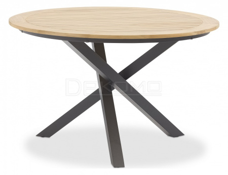 Круглый алюминиевый стол с красивой тиковой столешницей и квадратными ножками. Современно и стильно!