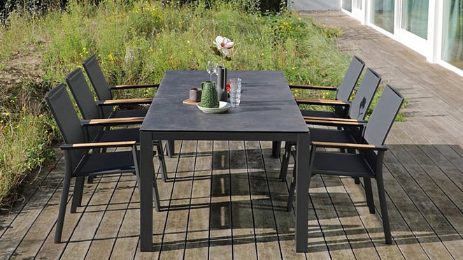 Lyon - это роскошные столы со столешницей из спеченного камня. Спеченный камень — это новейший продукт современных инноваций, он изготовлен из порошка натурального камня. Таким образом, столешница очень прочная. Материал устойчив к атмосферным воздействиям, устойчив к царапинам и к экстремальным температурам.