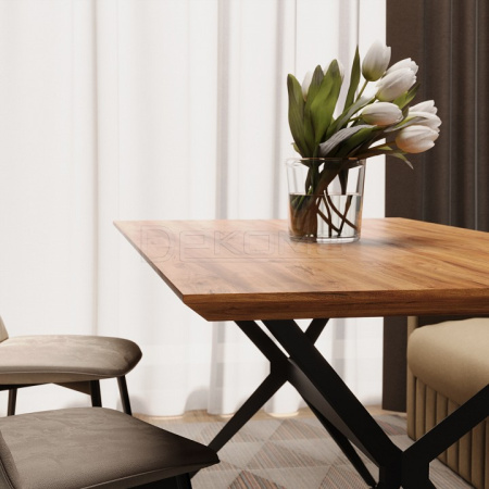 Металлическое подстолье с перекладиной гармонично дополняет общий дизайн, придавая конструкции устойчивость и надежность. Эстетика loft прекрасно играет на контрасте между массивной, фактурной столешницей из МДФ и легкостью металлических элементов. Этот стол станет не только практичным решением для обеденной зоны, но и выразительным акцентом в интерьере, привнося современный характер и стиль. Благодаря своему дизайну, он легко вписывается как в индустриальные, так и в более классические пространства, став идеальным выбором для тех, кто ценит качество и оригинальность.