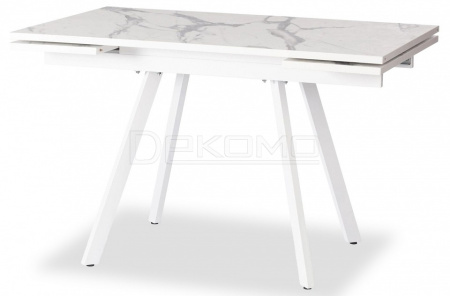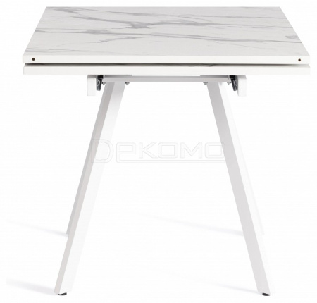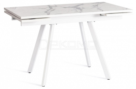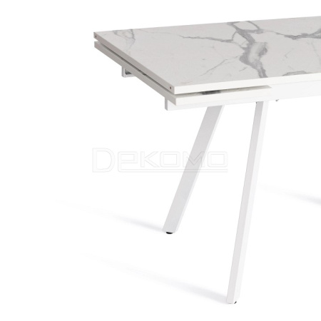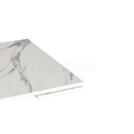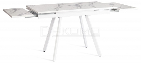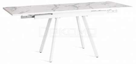 Стол VIGO из коллекции Modern украсит собой любую домашнюю обстановку Стол VIGO отлично подойдёт для гостиной, кухни, столовой или загородного дома. Столешница светлый мрамор и боковые выдвижные вставки выполнены из ЛДСП толщиной 22 мм на лицевую поверхность которых нанесен защитный слой HPL толщиной 1 мм. HPL имеет защитное покрытие оверлей высокой степени истирания, которое повышает устойчивость поверхностей к повреждениям. Структурированная поверхность столлешницы с имитацией натурального камня придает изыканный вид.Используется кромка ПВХ 2 мм. Для увеличения площади стола используется боковой механизм выдвижения с двумя вставками с обеих сторон. Прочные белые металлические ножки окрашены порошковой краской. Ножки стола регулируются по высоте для устранения неровности пола. За столом могут разместиться от 4 до 8 человек. Стол упакован в транспортировочный короб из ЛДСП + гофрокороб. Модель проста в сборке, инструкция по сборке прилагается.