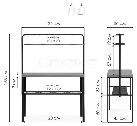 - Д:1250 x Ш:500 x В:1710