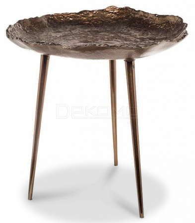 Самый модный тренд в дизайне интерьеров - предметы мебели и декора ручной работы, которые делают обстановку прекрасной, неповторимой и "человечной". Дизайнерский журнальный столик ручного литья как нельзя лучше отвечает модным тенденциям. Этот стол - авторское переосмысление традиций индийских ремесленников. Все неровности и изгибы металлической поверхности тщательно обработаны и зашлифованы до шелковистого блеска, изысканная ассиметрия формы подчеркивает красоту металла. Столик в восточном стиле украсит вашу гостиную или спальную комнату, словно колониальный трофей. Ваза с фруктами или кофейные чашки будут выглядеть на нем просто роскошно!