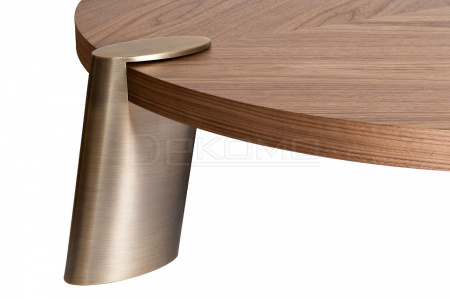 Необыкновенно стильный журнальный стол от бельгийского дизайнера Тома Де Вульфа стал хитом продаж в Европе. В процессе его создания автора вдохновляла отделка суперсовременных автомобилей люксовых марок. Три массивные стальные ножки цвета латуни имеют устойчивую обтекаемую форму и благородный шелковистый блеск, достигаемый шлифовкой металла вручную. Шпонированная столешница из светлого ореха выглядит дорого и изящно Сдержанные линии, скругленные формы, лаконизм в деталях сочетаются с высоким качеством материалов и отделки. Необычные пропорции притягивают взгляд и без слов говорят о том, что этот предмет мебели авторская работа известного дизайнера. Стол впишется в современный интерьер кабинета или гостиной, станет роскошным дополнением к стильному дивану или креслам.