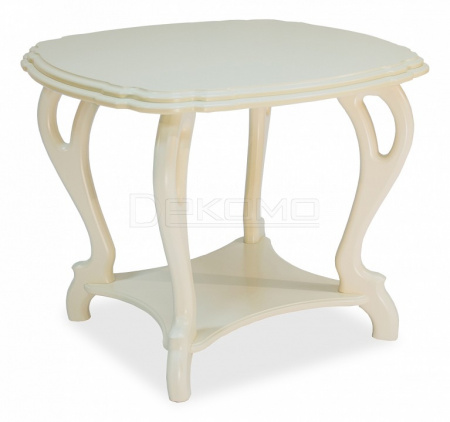 Столик Кофейный П имеет столешницу почти квадратной формы, что позволяет использовать его для угощения гостей кофе.