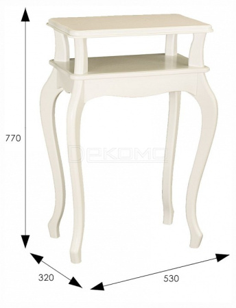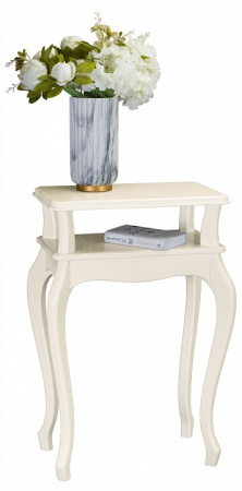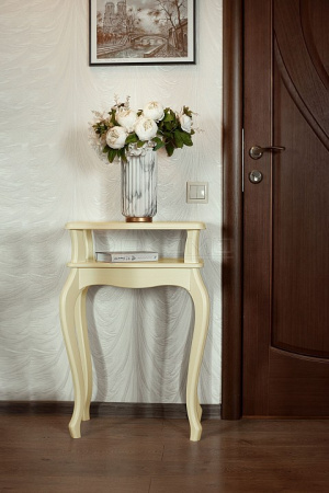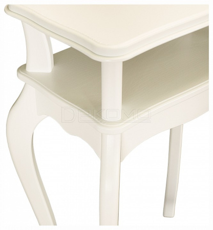 Сдержанный дизайн предмета мебели крайне эстетичен. Углы подставки сглажены, ножки изящно изогнуты. Кромку столешницы украшает аккуратный рельеф.