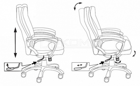 Механизм качания с регулировкой под вес и фиксацией в вертикальном положении. Подлокотники с мягкими накладками. Регулировка высоты - газлифт.