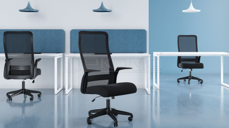 За лёгкостью образа скрывается усовершенствованная и продуманная эргономика. Высокая сетчатая спинка спроектирована так, чтобы соблюдать естественный изгиб тела и обеспечить правильное положение в кресле.