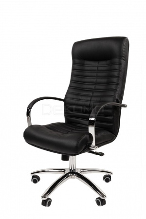 Стильное, необычное кресло руководителя. Его горизонтальный геометрический рисунок эффектно оттеняется хромированными элементами конструкции, а высокая эргономика достигается за счет анатомической формы и механизма качания повышенной комфортности.