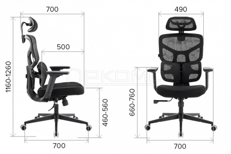 высота сиденья - 460-560 мм, ширина сиденья - 510 мм, глубина сиденья - 500 мм