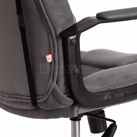Полиамидная крестовина отличается крепостью, основательностью и сохраняет свой первоначальный вид продолжительное время. В данном кресле используется надёжный газлифт 3 класса. Пластиковые подлокотники с мягкими накладками позволяют уменьшить дискомфорт в плечах и шеи, поддерживающая поясничная подушка даст возможность уютно устроится, подголовник с уникальной декоративной вышивкой позволят снять напряжение в позвоночнике.